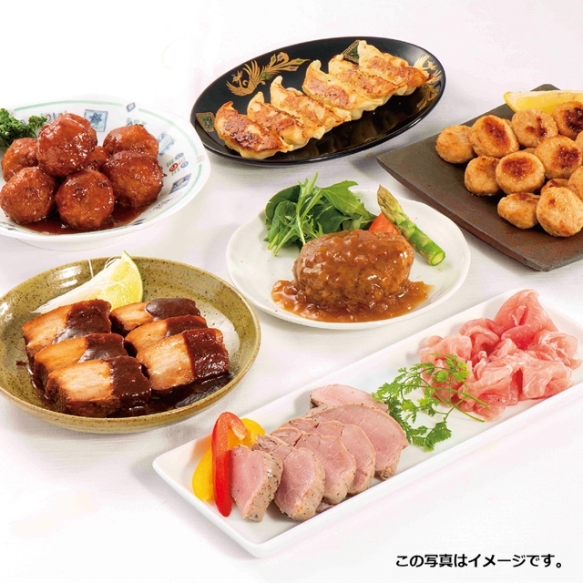 ■大龍 国産野菜とお肉の餃子(360g)■ハンバーグ(130g)×2■和風シャリアピンソース(40g)×2■豚ヒレ肉のローストポーク(100g)■黒酢たれ肉だんご(300g)■つくね串(210g)■豚肉の味噌煮込み(210g)■ロース生ハムスライス(67g)