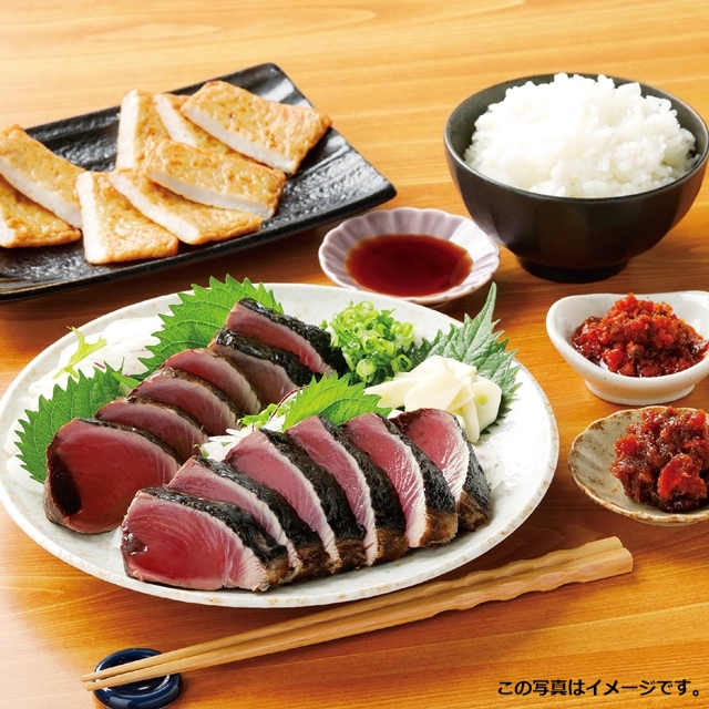 ■かつおの藁焼きたたき(350g)■くれ天(5枚入)■焼き味噌(150g)■漁師のラー油(鰹焼き節入)(120g)■たたきのたれ(80g)