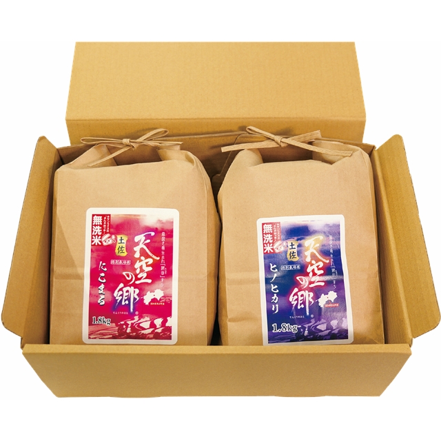 高知の本山町の特別栽培米「天空の郷米」にこまるとヒノヒカリの詰合せセットです。