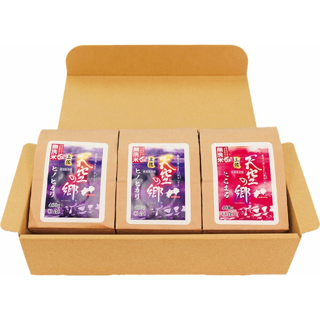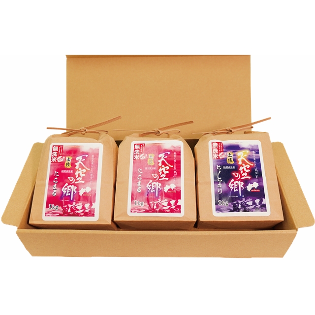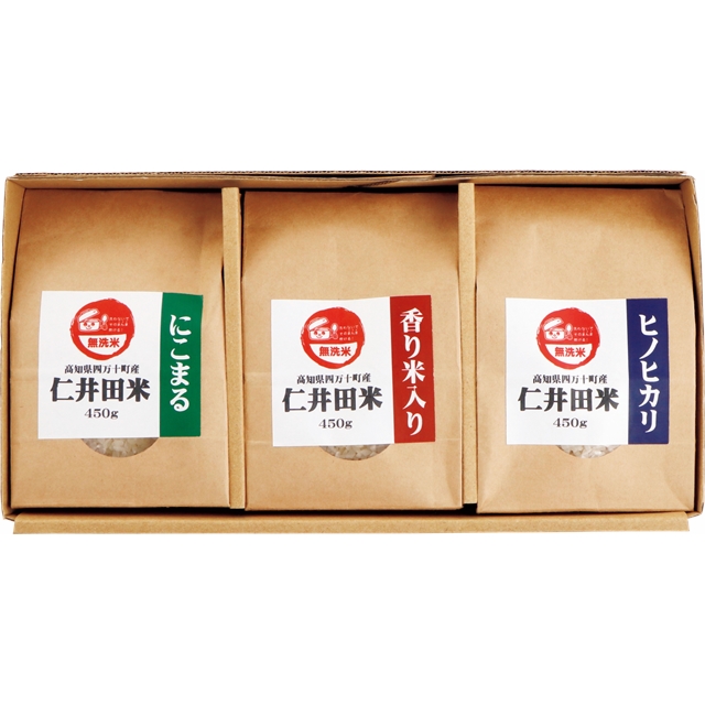 高知の銘米「仁井田米」の3合パックの詰合せ。高知県外の方にもお喜びいただけるギフトです。