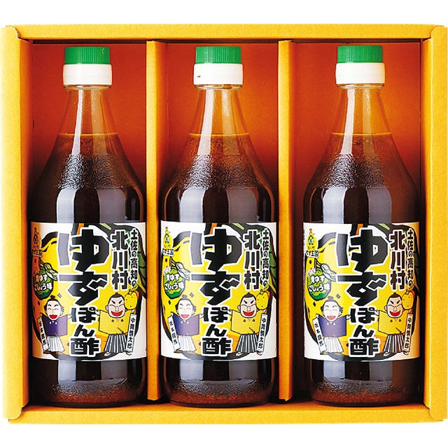 高知では冬の定番「ぽん酢しょうゆ ゆずの村」を贈答用箱に詰めお届けいたします。