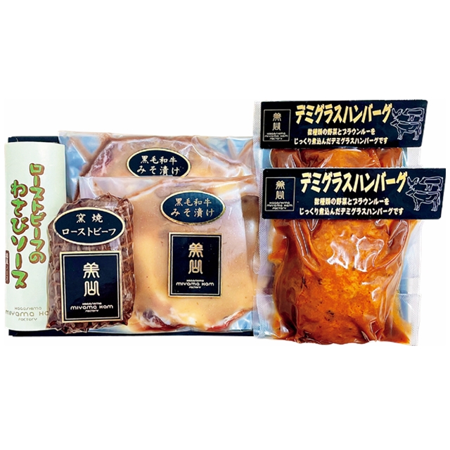 美山ハム 黒毛和牛ローストビーフ・リブロース味噌漬け詰合せMY-500