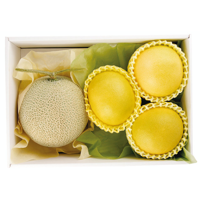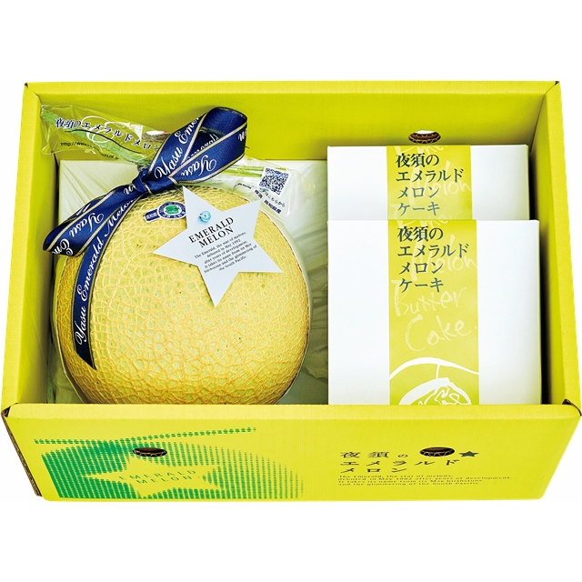 温暖な気候を生かしたハウスの中で、1本の苗に1玉だけしか作らない夜須のエメラルドメロン。エメラルドメロンを使った美味しいフィナンシェと自慢の美しいメロンの詰合せをご利用ください。