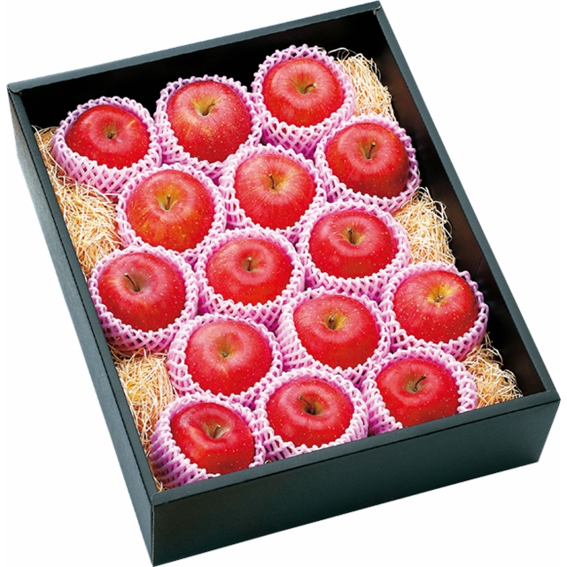 光センサー選果機で糖度14度以上のりんご(さんふじ)を厳選し、サニーマートで詰合せました。