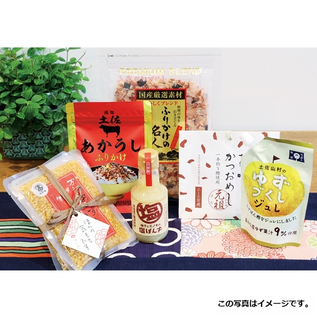 かつおめしやおかず生姜、ゆずぽん酢など、ご飯に合う品々を厳選した人気の味わいセットです。ゆずや生姜の風味が毎日のご飯をもっと美味しく彩ります。