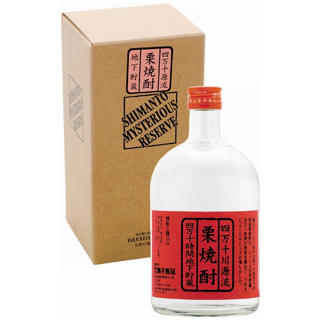 栗焼酎「ダバダ火振」の原酒を四万十川にちなんで40010時間地下トンネル貯蔵庫で熟成した栗焼酎古酒。