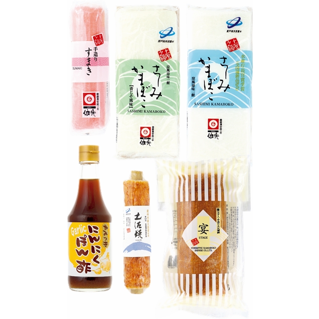 厳選した土佐伝統の蒲鉾とオリジナルにんにくぽん酢をセットにしました。