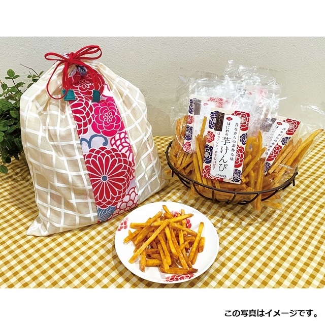 甘過ぎず美味しいと評判のプレミアム芋けんぴ5袋をかわいい巾着に詰め込みました。巾着は旅行やスポーツなど様々なシーンに便利な大きさです。サニーマート限定30セットです。